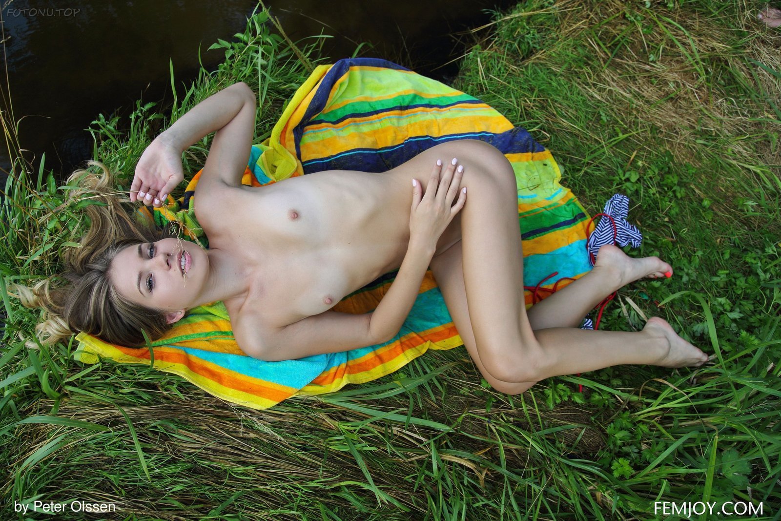Описание: На улице было так хорошо, что стройная молодая девчонка, надев купальник и взяв подстилку, пошла на речку. Здесь настолько классно, что пока никого нет, милашка разделась догола. Ей захотелось искупаться голышом, ведь это так возбуждает, когда погружаешь свою киску в прохладную воду. А выйдя из озера, веселая крошка сделала несколько интимных фоток на подстилке, показав свою маленькую грудь.